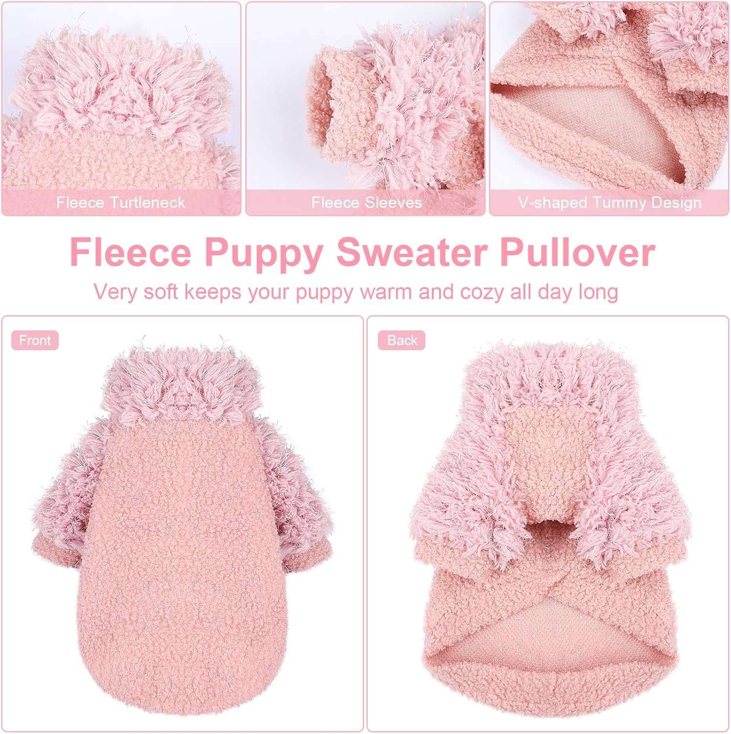 Winterhonden jassen voor kleine honden meisje jongen turtleneck huisdier kleine hond trui trui trui hond winterkleding fleece dog jack puppy trui vest voor chihuahua yorkie, xxs, roze