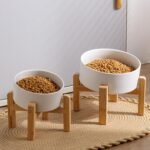 Veilig keramiek dat wordt afgevuurd op hoge temperatuur en natuurlijke bamboe- en houtstandaard om uw huisdieren een gezonde voedingsomgeving te voorzien.
