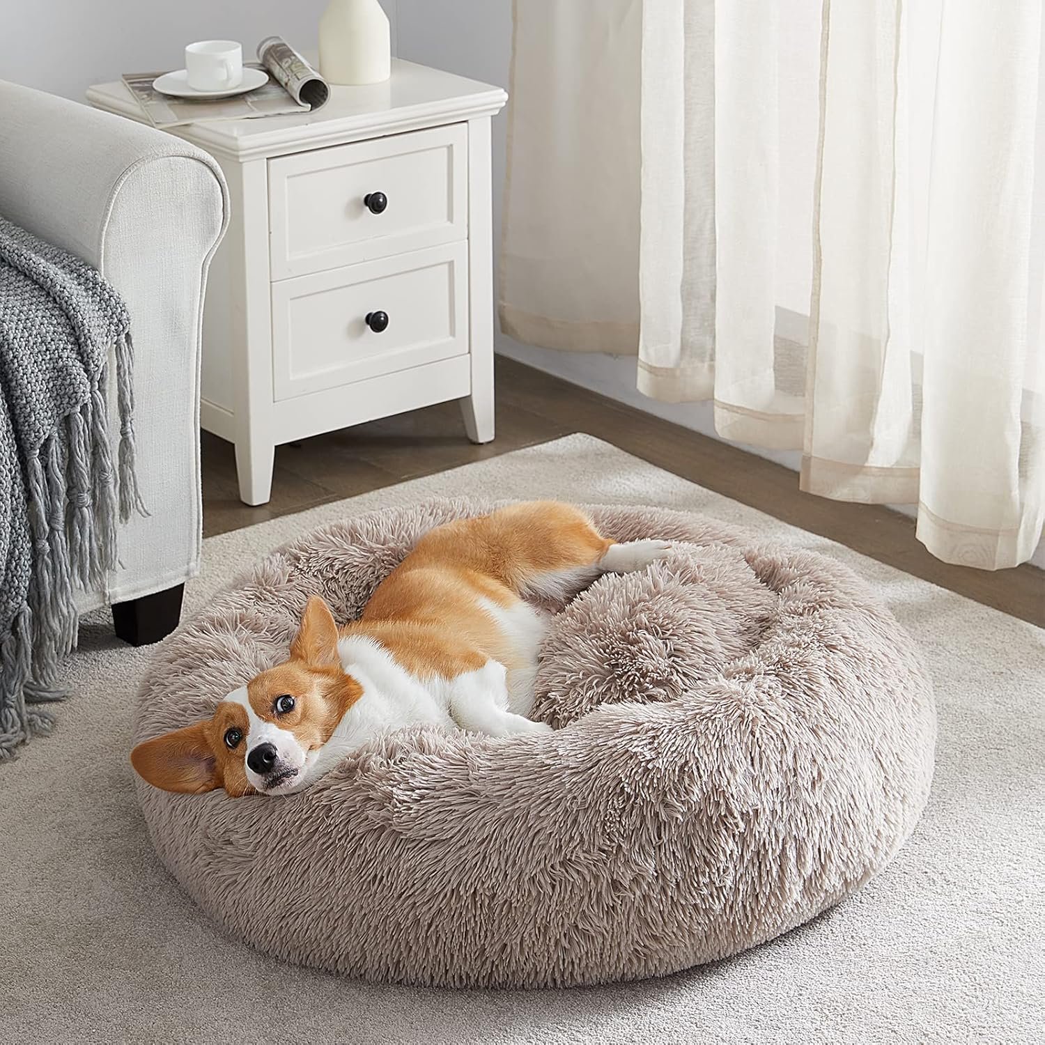 Comfortabele en diepe slaap: comfortabele zacht warm bionisch faux bonthondenbed doet denken aan de omhelzing van een huisdiermoeder, waardoor een anti -angst en kalmerend huisdierenbed ontstaat, laat uw huisdier een diepe rustgevende slaap hebben.