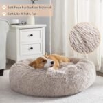Wnpethome kalmerende hondenbed Cat bed donut, faux bont pet bed zelfverwarmende donut cuddler, comfortabele ronde pluche hondenbedden (30 x 30 x 10 inch, bruin)