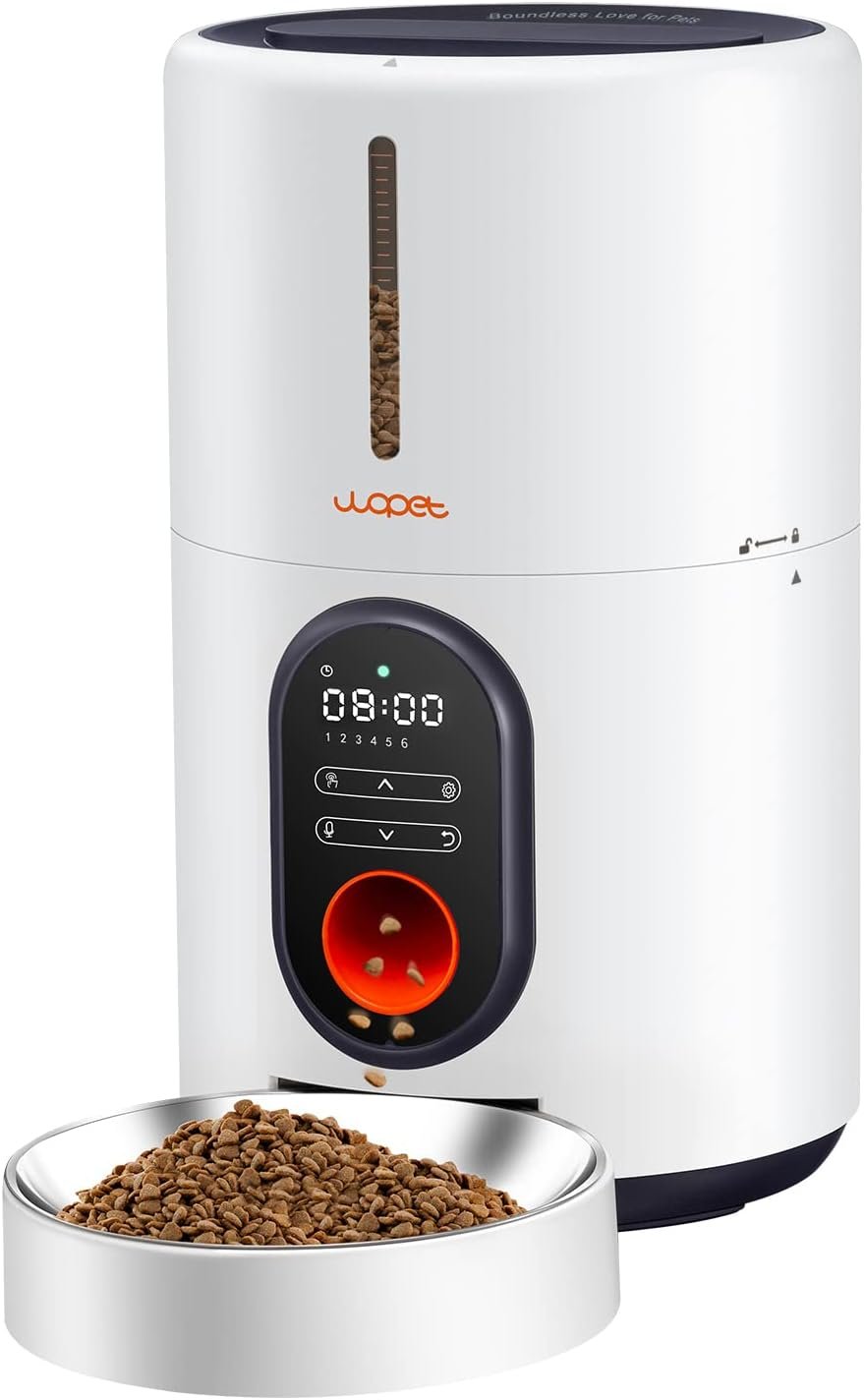 Wopet Automatic Cat Feeder, 4L hondenvoer dispenser met roestvrijstalen kom, getimede huisdiervoeder met portiecontrole, spraakrecorder voor kat en kleine honden, tot 1-6 maaltijden per dag