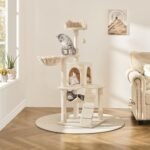 Yaheetech Cat Tree, 54in lange kattentoren voor binnenkatten met uitgebreid platform en mand, ruim kattenbond, grappige hangmat, krassende palen en ladder, beige