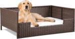 Yitahome rattan honden sofa bed met kussen, rieten huisdierbed bank bank binnen buiten waterbestendig voor grote middelgrote kleine honden katten (38.6”l*26.4”w*15”h, beige)