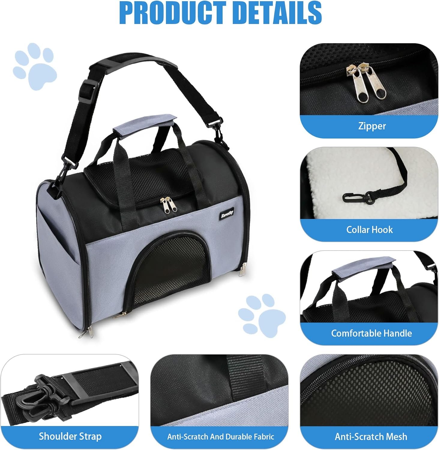 Zavothy TSA Airline goedgekeurde zachtzijdige huisdierdrager voor kleine tot middelgrote katten en puppy’s, tot 15 pond-opvouwbare reisdrager voor honden en katten, grijs