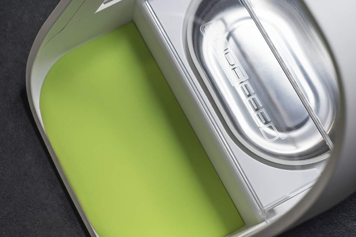 Pak twee roestvrijstalen/metalen kommen voor katten en kleine honden die compatibel zijn met de zekere voedermicrochip -huisdiervoeder en verzegelde huisdierenkom. Hypoallergene, verzegelde kom houdt voedsel frisser en vrij van vliegen.